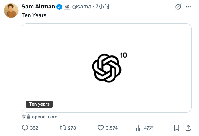 12月12日,在正式上线GPT-5.2的同时,OpenAI CEO萨姆·奥尔特曼(Sam Altman)发布了一篇十周年纪念文章中这样说。
